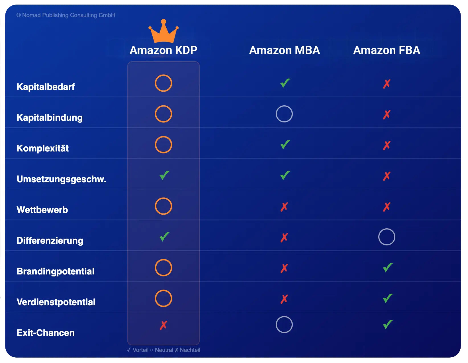 KI als echter Vorteil: Wie oben beschrieben, profitiert KDP wie kein anderes Amazon-Modell von den aktuellen KI-Entwicklungen. Die Produktionskosten sinken, die Geschwindigkeit steigt. Wer KI als Werkzeug klug einsetzt, hat heute einen echten Wettbewerbsvorteil.
